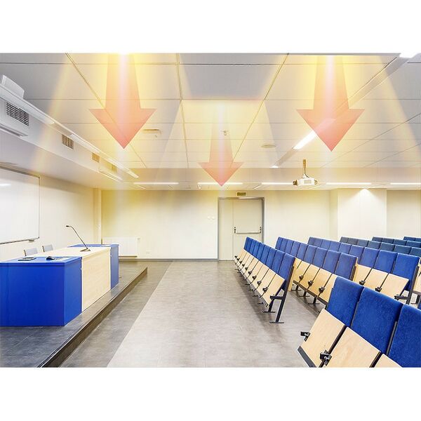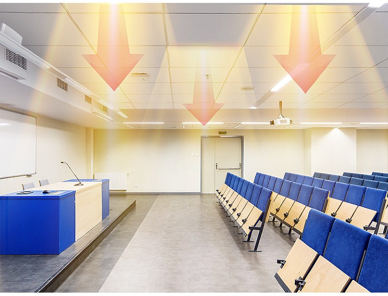 - Обогреватели оптимально подходят для обогрева офисных, торговых, общественных помещений, а также кафе, баров, ресторанов – любых помещений, где используются системы подвесных потолков типа «Армстронг».
