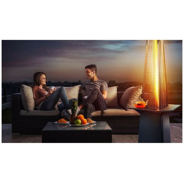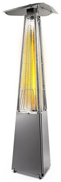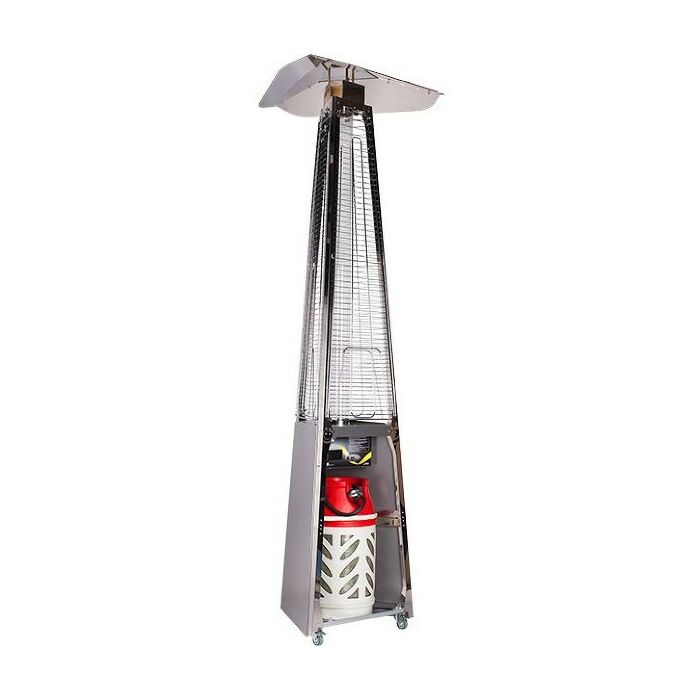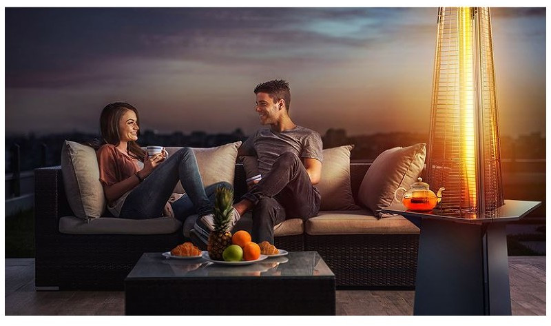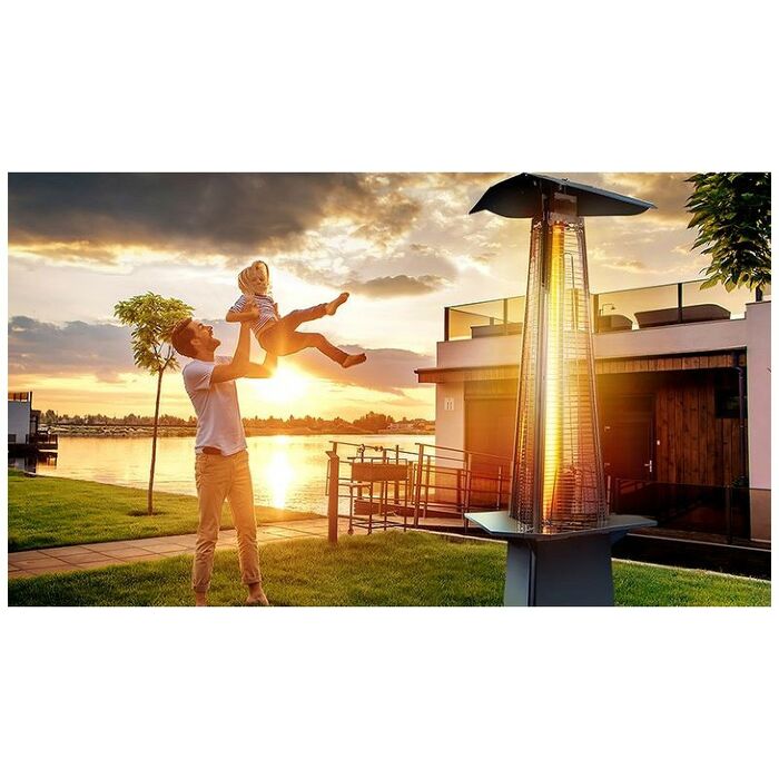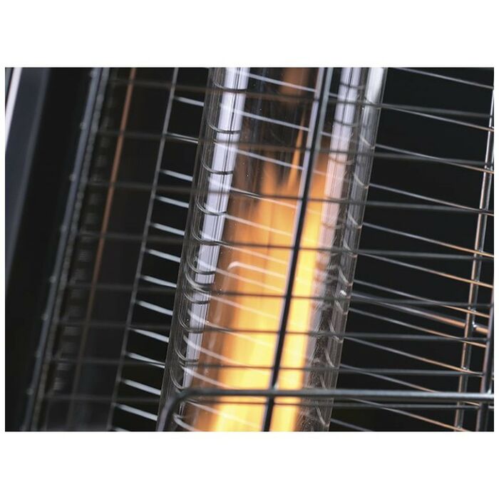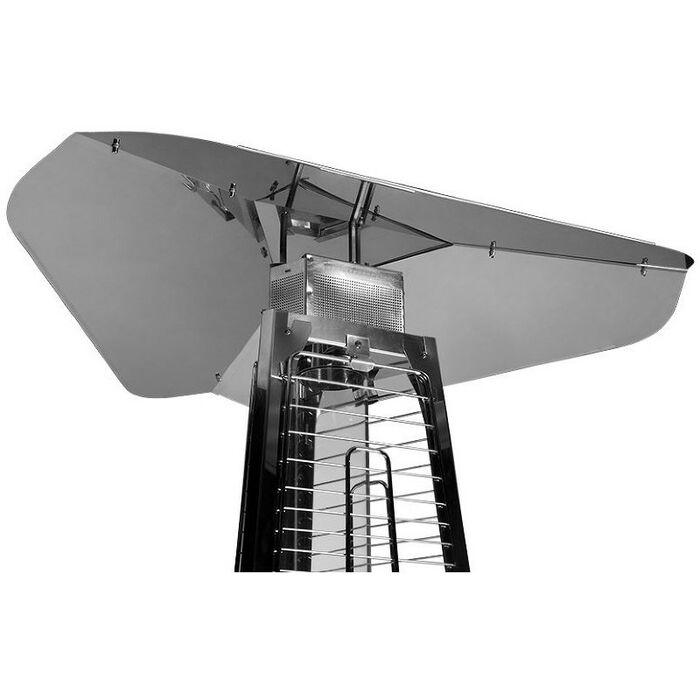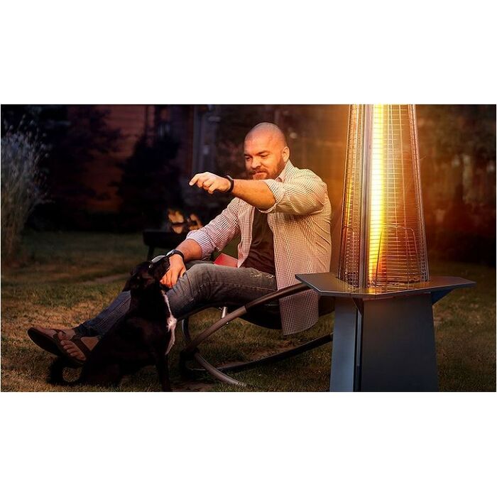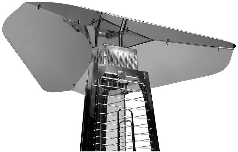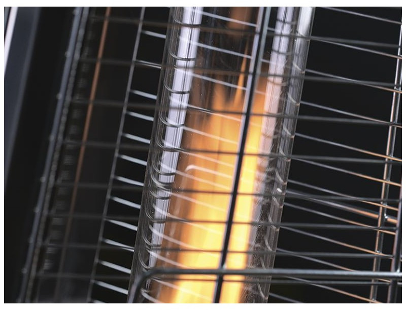 - Уличный камин изготовлен из устойчивой к коррозии легированной нержавеющей стали и защищен от попадания атмосферных осадков сверху четырехгранным отражателем, площадь поверхности которого составляет 0,5 м². За безопасность эксплуатации отвечает многоуровневая система защиты. Датчик наклона отключает пламя при наклоне газового обогревателя более чем на 45°, термоэлектрический датчик и электромагнитный клапан сразу же останавливают подачу газа в критических ситуациях, таких как затухание пламени или утечка газа. За счёт встроенной колёсной базы обогреватель свободно и безопасно можно перемещать по любой поверхности