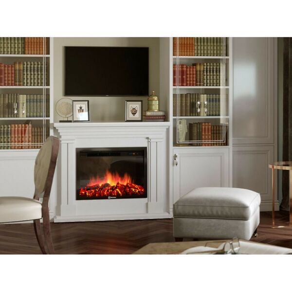 - Многоуровневый верх портала визуально ведет взгляд зрителя к яркому реалистичному пламени очага