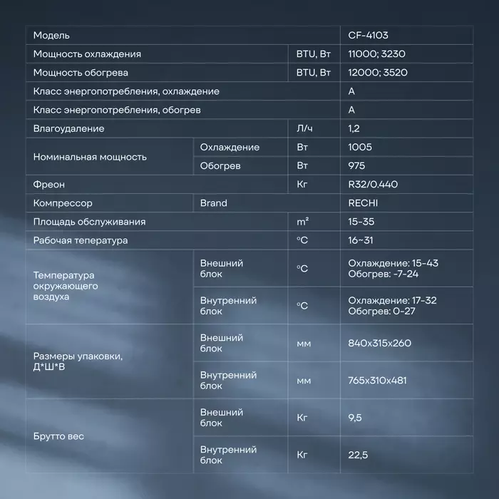| Вес внешнего блока | 19.5 кг |
