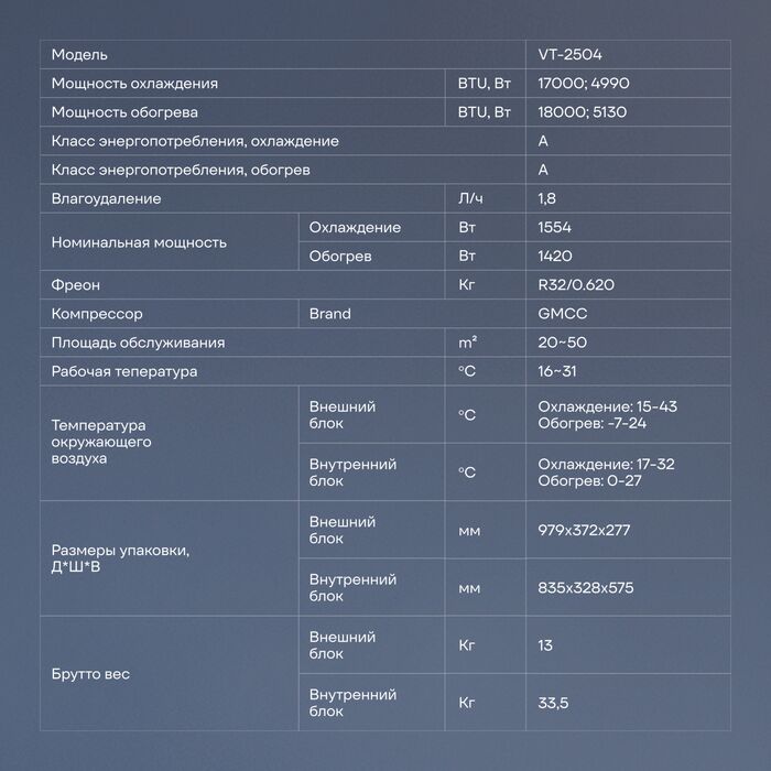 Сплит-система Vitek VT-2504 белый