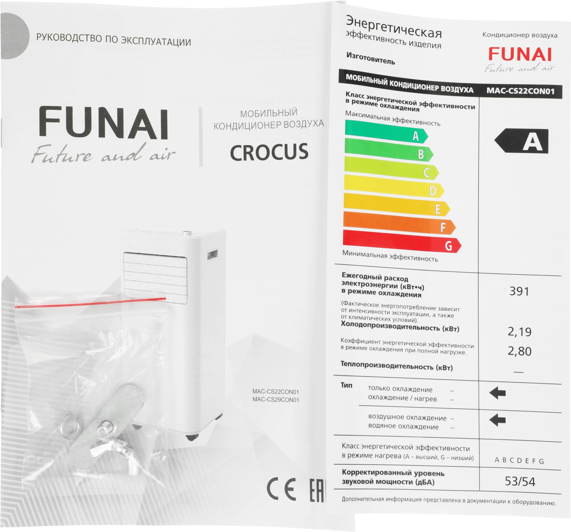 Мобильный кондиционер FUNAI MAC-CS22CON01 Crocus белый площ.20м2