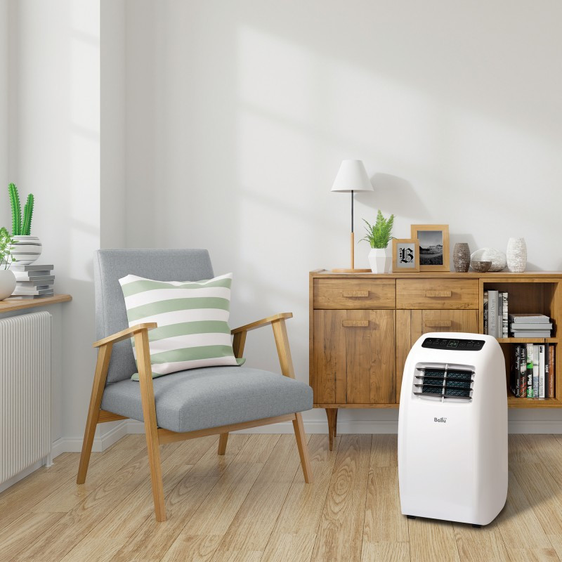 - Легкий и компактный (высота прибора – всего 67 см, ширина – 37 см) мобильный кондиционер BALLU BPAC-07 CP_22Y мощностью 2,05 кВт способен охладить помещение площадью до 16м²
