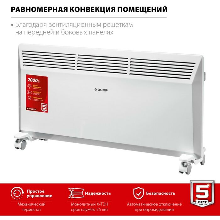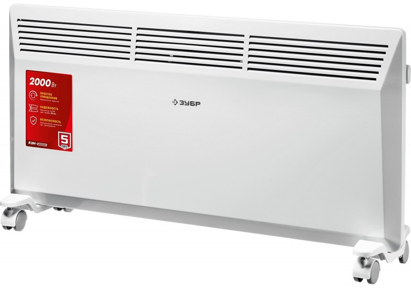 - Электрический конвектор ЗУБР мощностью 2000 Вт - подойдет для обогрева любых домашних и офисных помещений площадью до 25 м2.