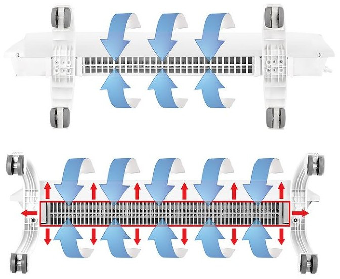 - Запатентованная конструкция жалюзи обеспечивает равномерную конвекцию, снижает температуру корпуса и предотвращает попадание мелких частиц внутрь конвектора