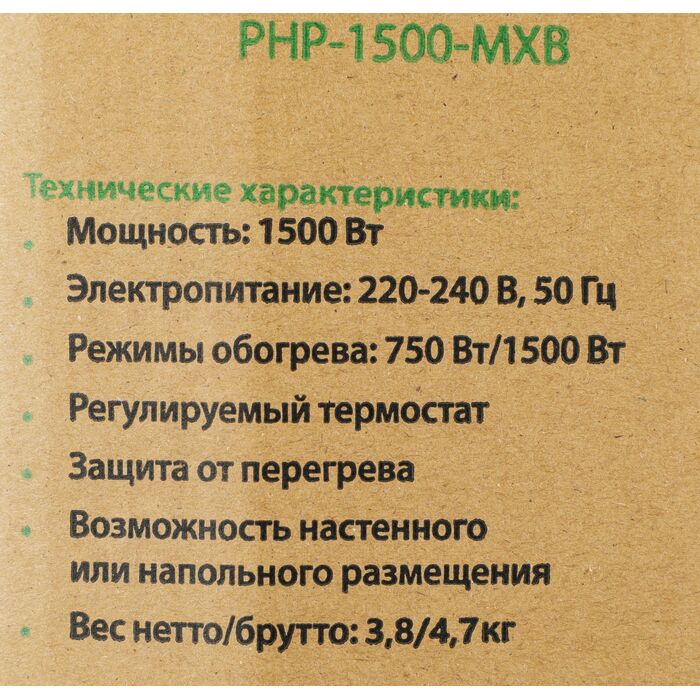 | Класс защищенности обогревателя | IP20 |