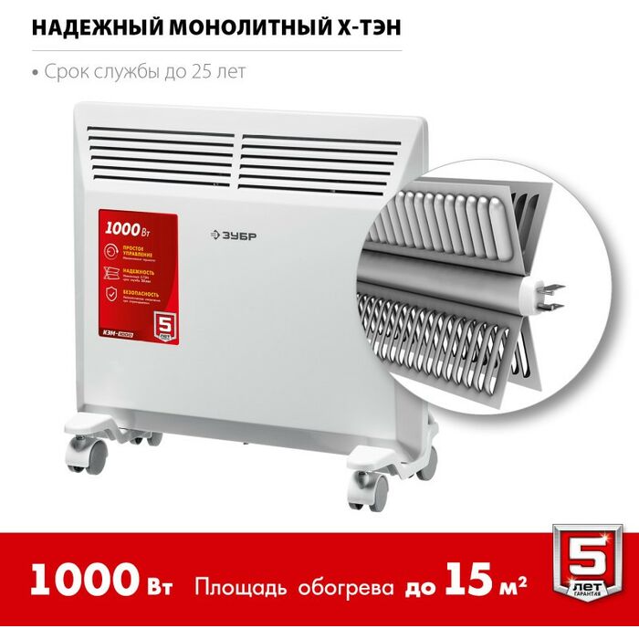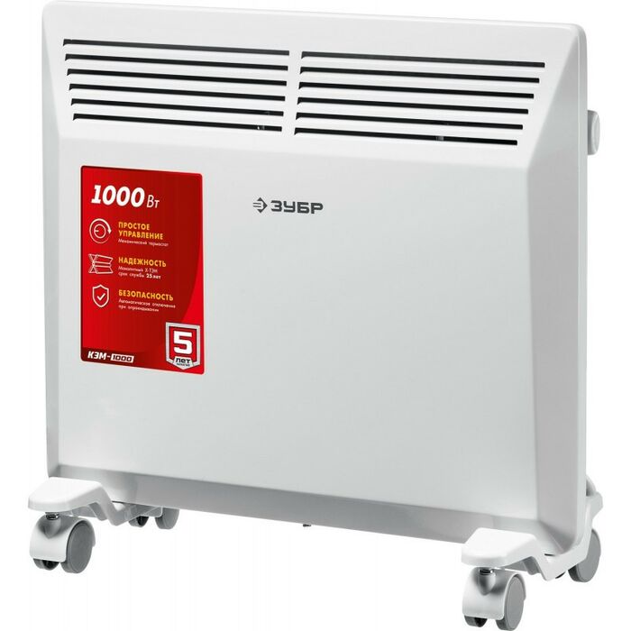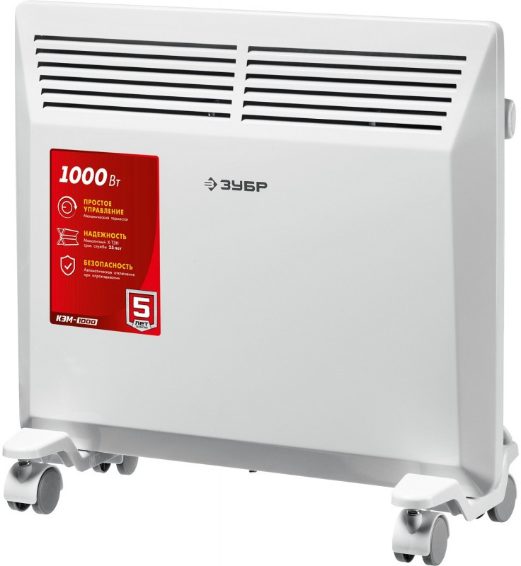 Электрический конвектор ЗУБР мощностью 1000 Вт - подойдет для обогрева любых домашних и офисных помещений площадью до 15 м2.