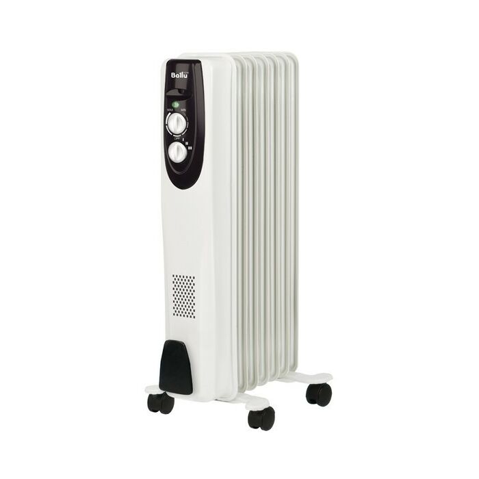 Масляный радиатор Ballu BOH/CL-07WRN 1500 с максимальной мощностью обогрева 1,5 кВт, рекомендуемая площадь обслуживания до 20 кв.метров. Удобен при перемещении, так оснащен колесами.