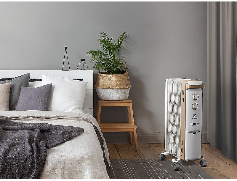 Масляный радиатор Electrolux Wave EOH/M-9157 с максимальной мощностью обогрева 1,5 кВт, рекомендуемая площадь обслуживания до 20 кв.метров. Удобен при перемещении, так оснащен колесами.