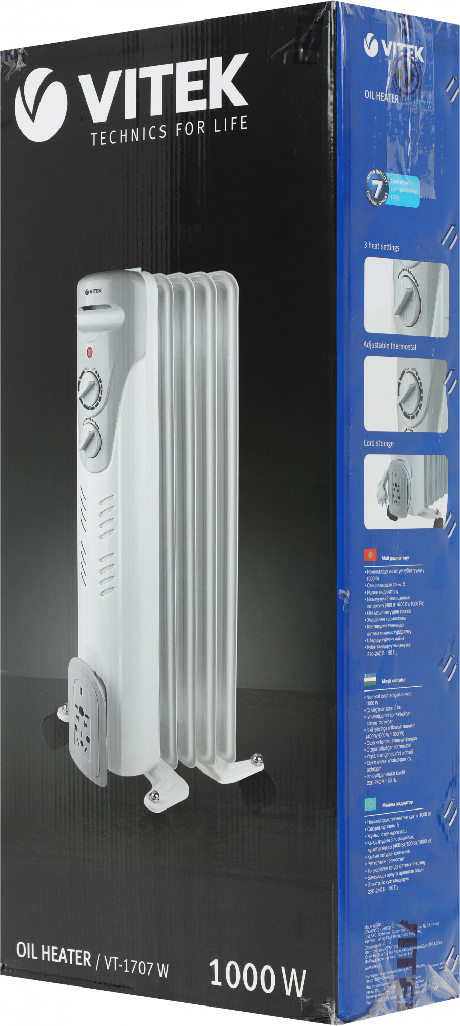 Радиатор масляный Vitek VT-1707 1000Вт белый