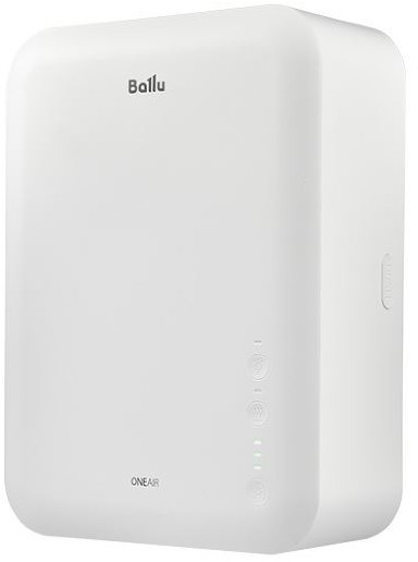 - Ballu ONEAIR ASP-80 – компактный приточный очиститель с габаритными размерами всего 352х262х140 мм