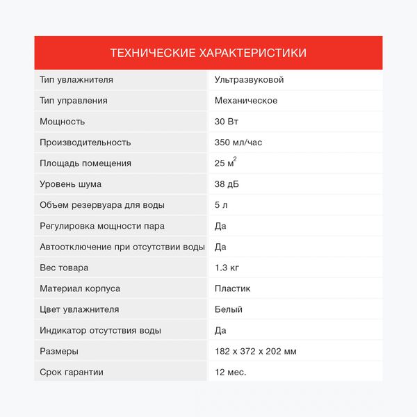 | Особенности | Верхний залив воды; Окно-индикатор уровня воды; Противоскользящие ножки |