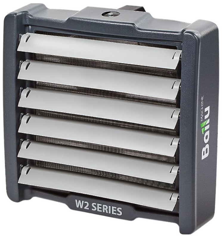 - Водяной тепловентилятор Ballu BHP-W2-70-LN – прибор для обогрева складских и промышленных помещений большой площади с высотой потолков более 6 метров