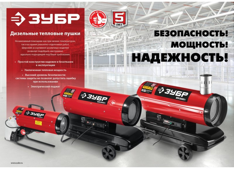 - Высокоэффективный дизельный теплогенератор прямого нагрева работающий на дизельном топливе для всех климатических условий. Оптимально подходит для сушки и прогрева на строительных площадках складских комплексов и проветриваемых помещений. Надежный поджиг и эффективное горение гарантируют безотказную подачу тепла в любых условиях эксплуатации. ЗУБР - тепло всегда и везде