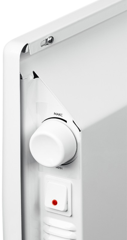 • Механический термостат позволяет экономно расходовать энергию и поддерживать комфортную температуру воздуха в помещении