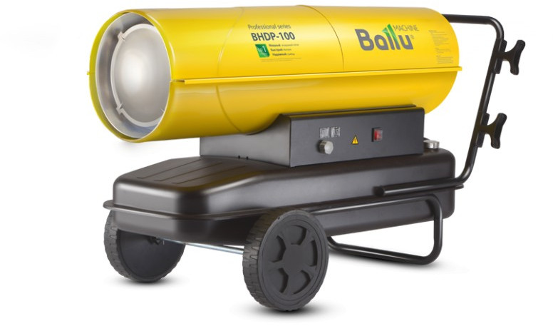 - Воздухонагреватель дизельный прямого нагрева Ballu BHDP-100 серии Tundra предназначен для обогрева нежилых помещений и локального прогрева рабочих поверхностей. Тепловая мощность прибора составляет 100кВт. При работе дизельной пушки воздушный поток, проходя через защитную решётку – втягивается в камеру сгорания. Там он смешивается с распылённым форсункой дизельным топливом, которое при помощи мощного насоса под высоким давлением подаётся из топливного бака, образуя воздушно – топливную смесь
