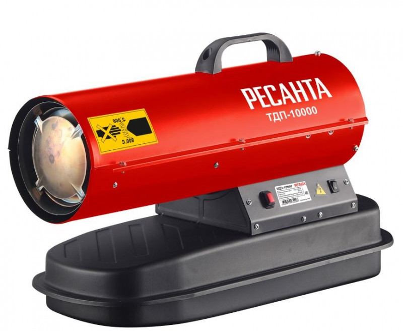 - Тепловая дизельная пушка Ресанта ТДП-10000 67/1/31 предназначена для отопления больших строительных, складских и других помещений
