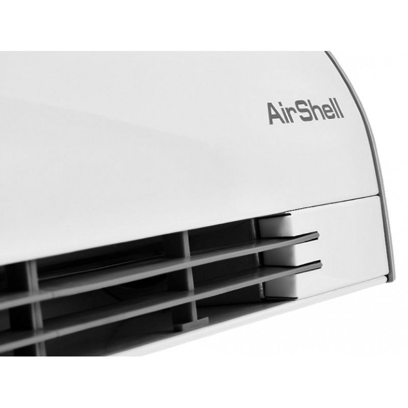 - Передняя панель без перфорации блокирует распространение шума от вентиляционных колес направляя его в потолок а не в проходящих людей, что делает завесу значительно тише аналогов в классическом корпусе