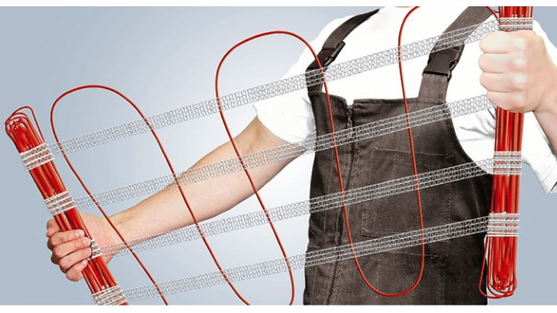 - Маты на эластичной основе, в отличие от матов на сетке, позволяют варьировать форму укладки: от привычной прямоугольной формы до укладки ромбом или трапецией. Таким образом, можно обойти все «препятствия» и установить тёплый пол сложной геометрии. Это весьма удобно для монтажа теплых полов в помещениях с нестандартными размерами, например, в ванных комнатах, прихожих или кухнях с крупногабаритной стационарной техникой