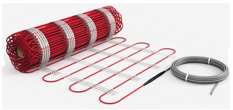 - Маты на эластичной основе, в отличие от матов на сетке, позволяют варьировать форму укладки: от привычной прямоугольной формы до укладки ромбом или трапецией. Таким образом, можно обойти все «препятствия» и установить тёплый пол сложной геометрии. Это весьма удобно для монтажа теплых полов в помещениях с нестандартными размерами, например, в ванных комнатах, прихожих или кухнях с крупногабаритной стационарной техникой