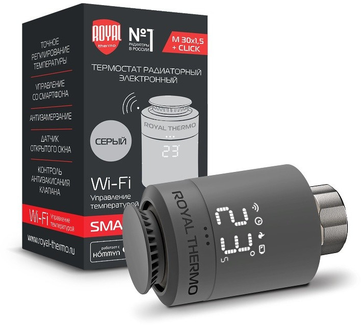 - Термостат радиаторный электронный ROYAL THERMO Smart Heat с LED дисплеем и регулятором температуры. Точность установки температуры - 1°С