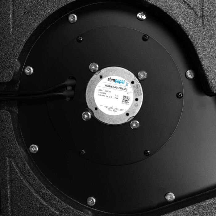 - Установлены высокоэффективные вентиляторы Ebmpapst (Германия) с крыльчатками с вперед загнутыми лопатками.