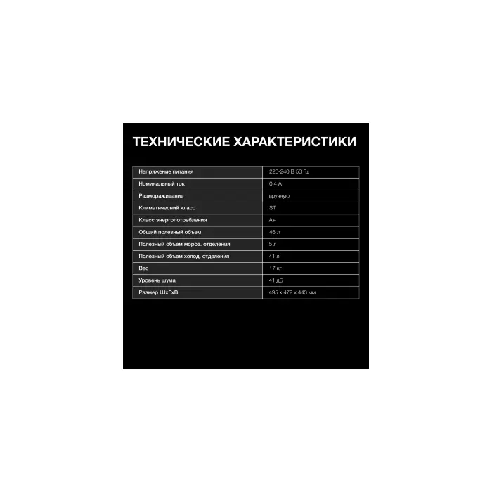 | Полезный объем холодильника | 46 л |
