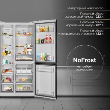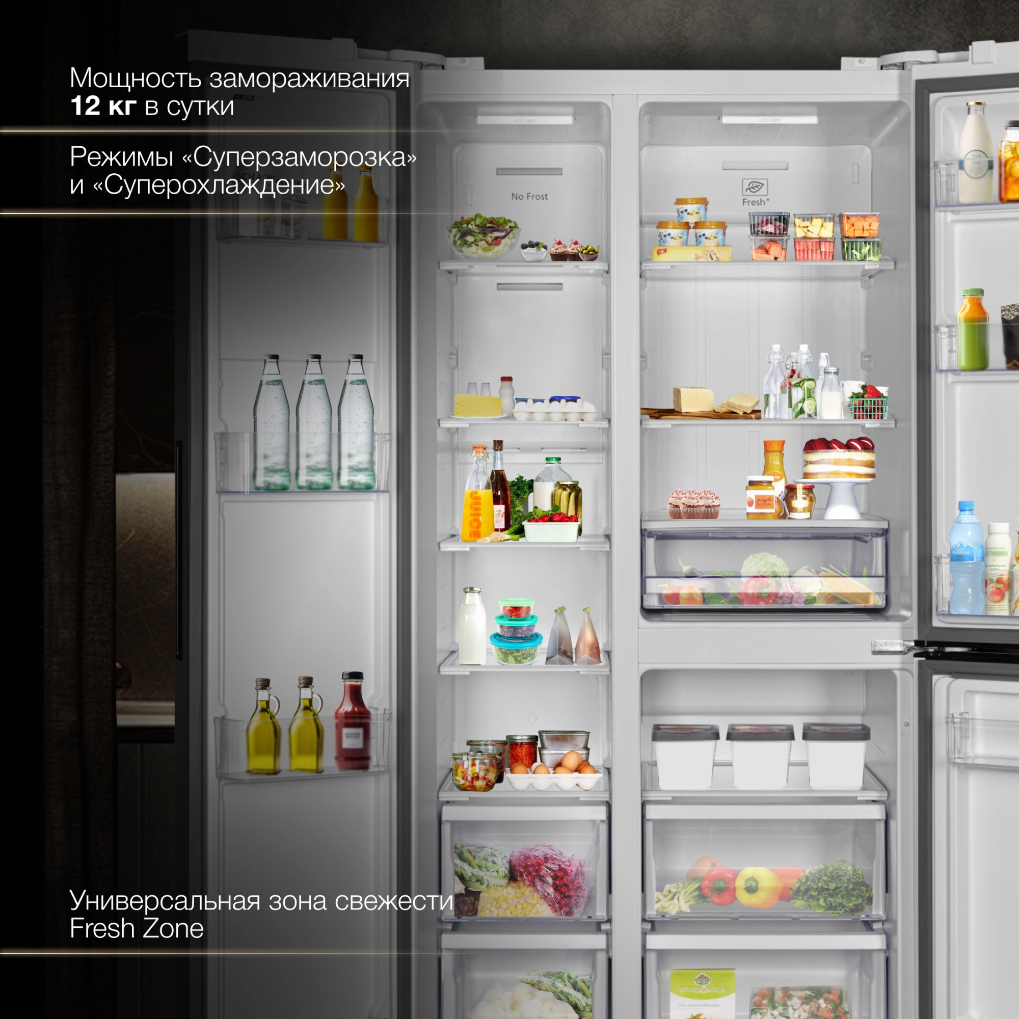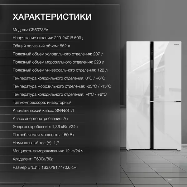 Холодильник Hyundai CS6073FV 3-хкамерн. белое стекло инвертер