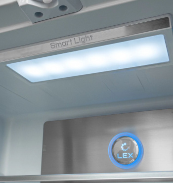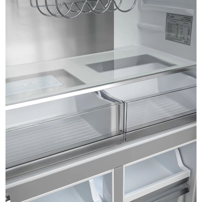 | Особенности | Модель типа CROSS DOOR имеет верхнее холодильное и два независимых нижних морозильных отделения. |