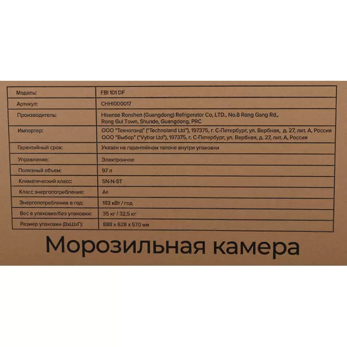 | Тип | Морозильная камера |