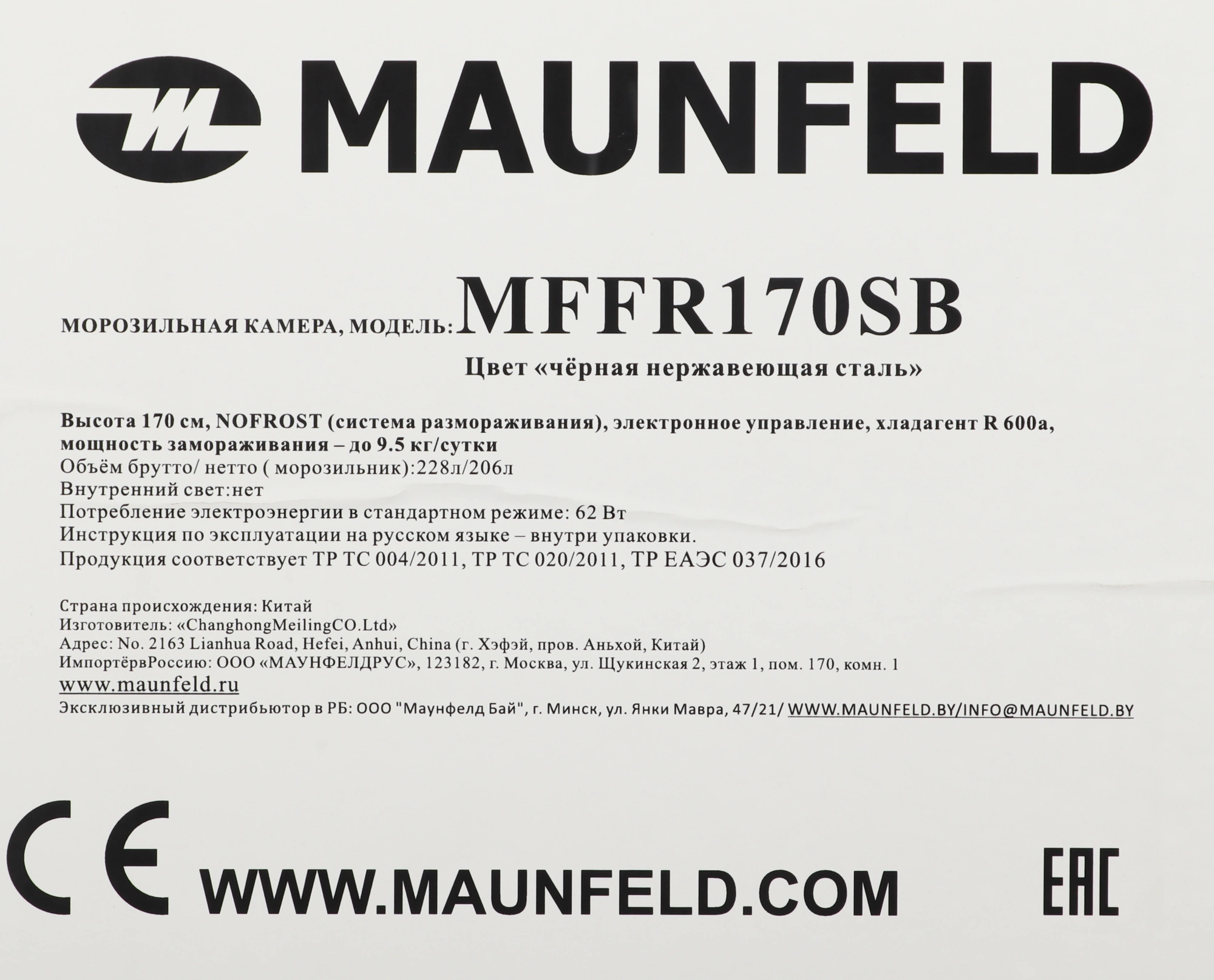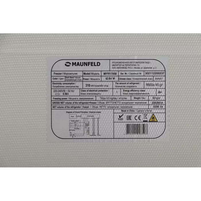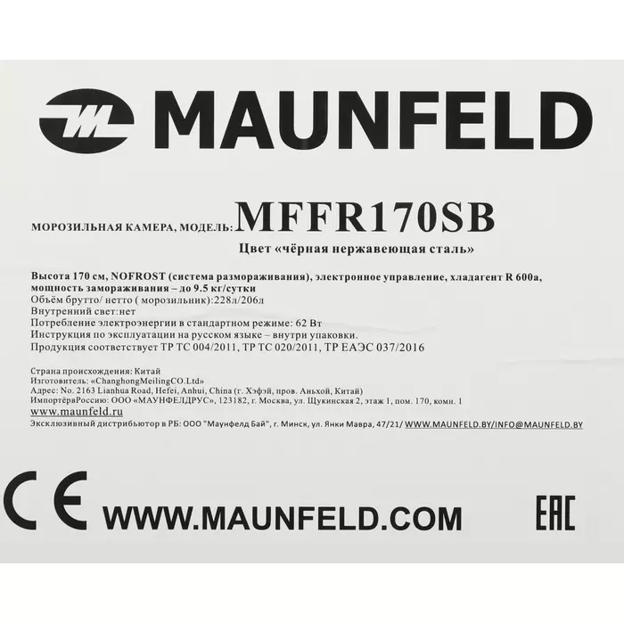 Характеристики Основные характеристики Тип Морозильная камера Бренд MAUNFELD Модель MFFR170SB Температура морозильной камеры min...