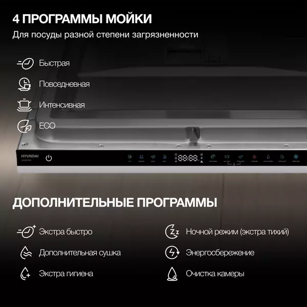 | Программы | Быстрая, Повседневная, Интенсивная, ECO |