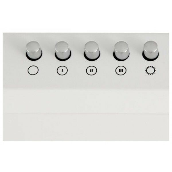 Вытяжка кухонная подвесного типа оснащена тремя скоростями работы, механическим управлением, производительность составляет 350 куб. м/час.