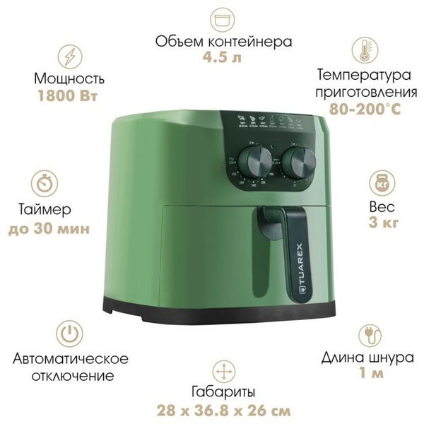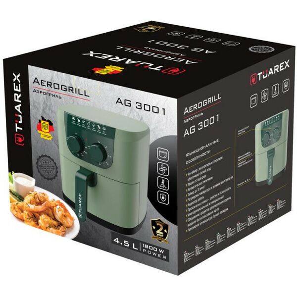 Стильный, современный, многофункциональный аэрогриль Tuarex AG-3001 – это лучший помощник для вашей кухни. С помощью этой модели, Вы сможете быстро приготовить блюда без вреда здоровью, так как для этого практически не нужно использовать масло. И идеально подойдет для людей, которые придерживаются правильному питанию