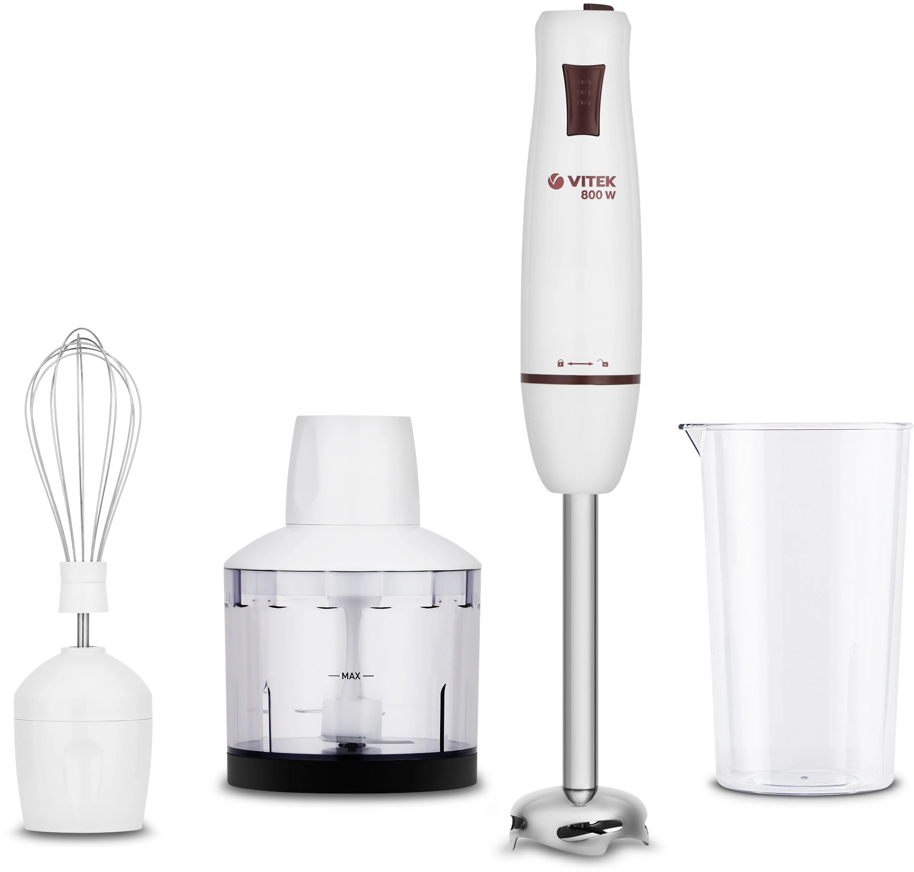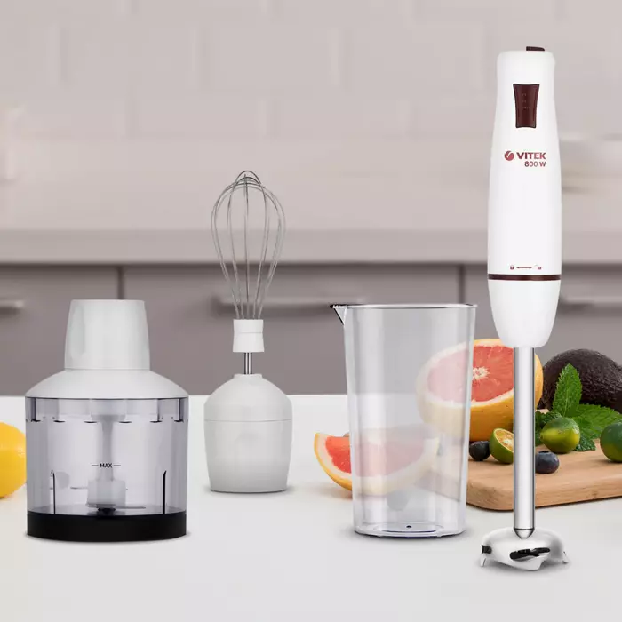 Блендер Vitek VT-8522 W погружной, мощность 800 Вт, количество скоростей - 20, цвет белый