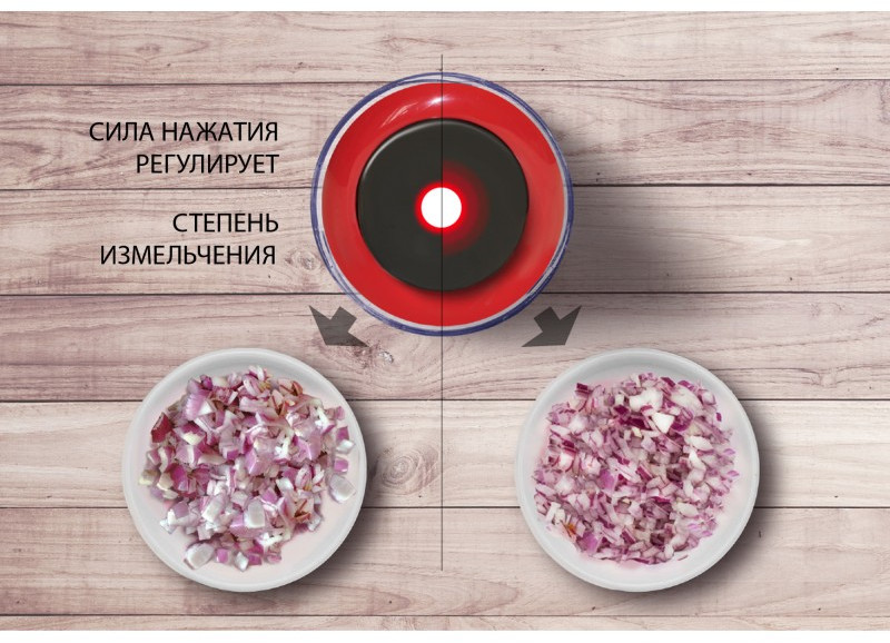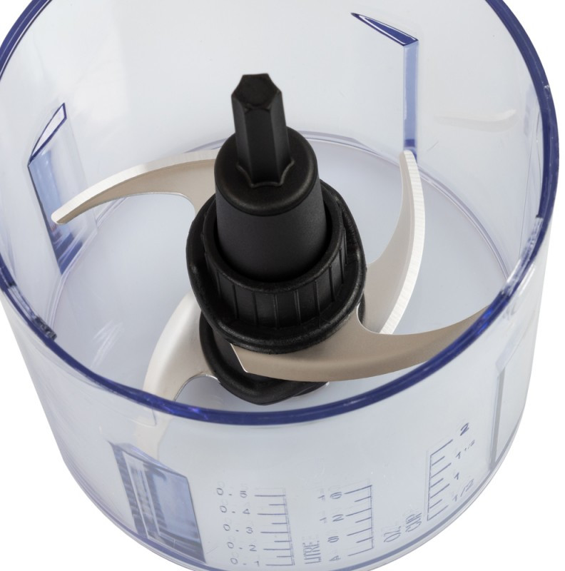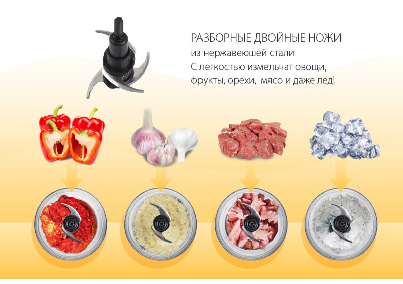- Двойное лезвие из нержавеющей стали для рубки и измельчения (мясо, овощи и фрукты)