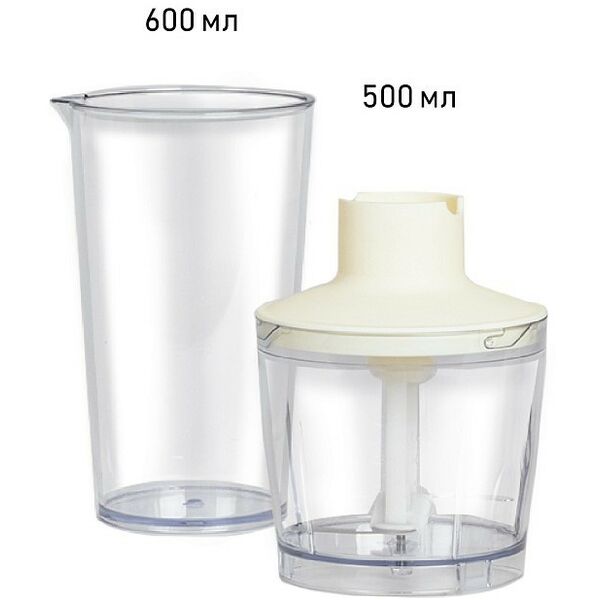 - Блендер, мини-измельчитель, мерный стакан, съемная насадка-блендер, съемная насадка-венчик, гарантийный талон, инструкция на русском языке