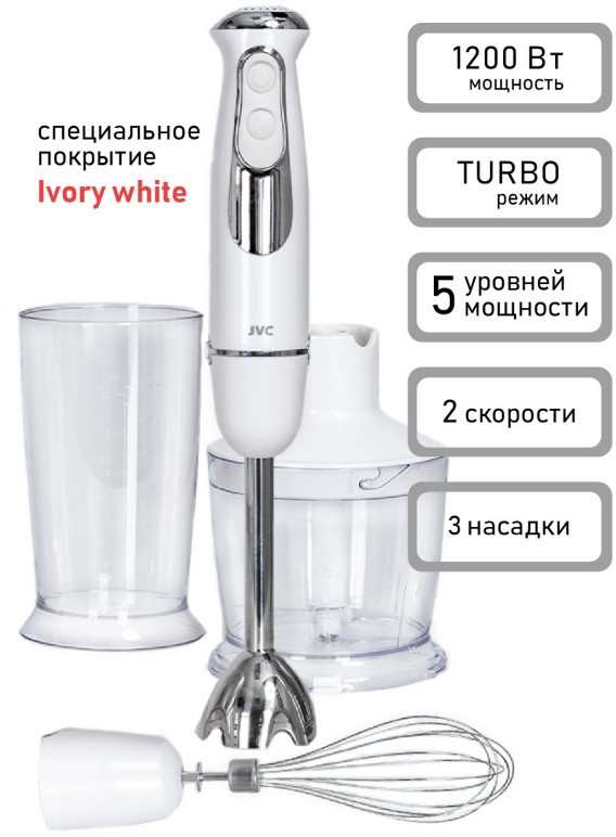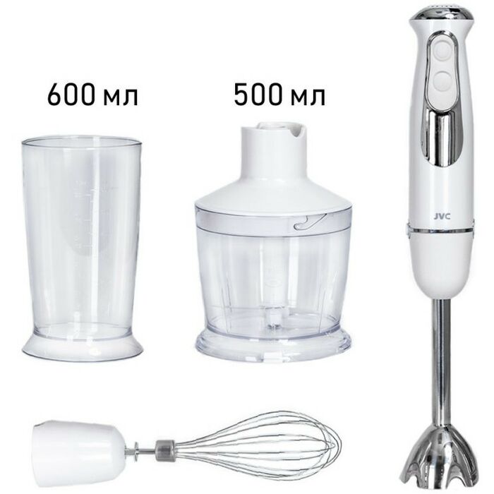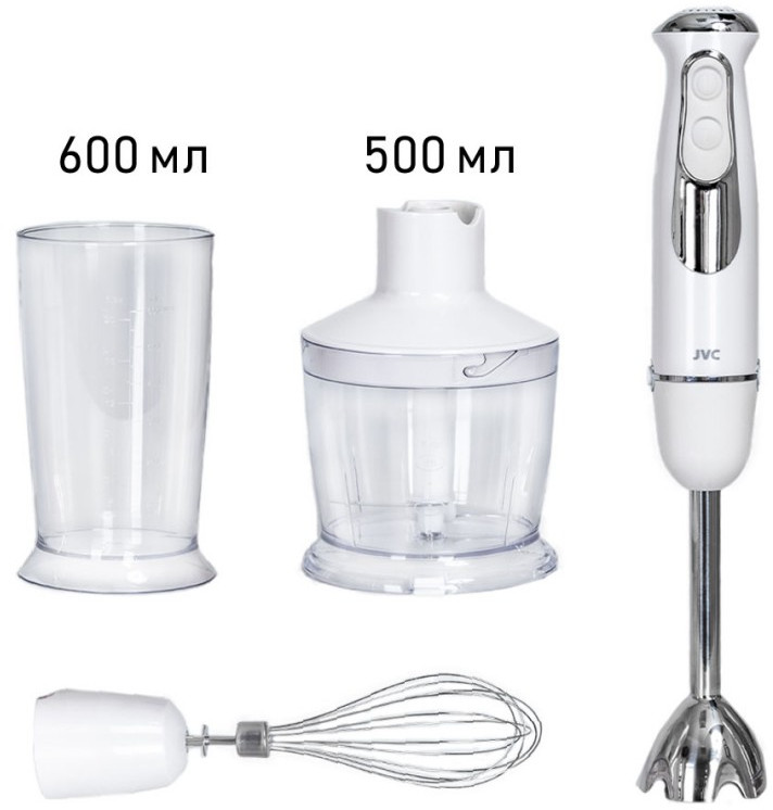 - Блендер, мини-измельчитель, мерный стакан, съемная насадка-блендер, съемная насадка-венчик, гарантийный талон, инструкция на русском языке