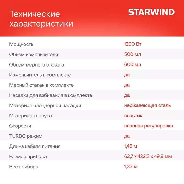 | Мерный стакан | Да |