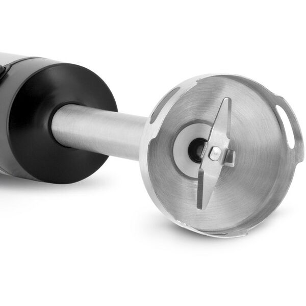 - Прибор обладает отличной работоспособностью (максимальная мощность — 1250 Вт) и надежностью: его погружная часть и лезвия выполнены из высококачественной нержавеющей стали