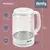 Колба из боросиликатного стекла. Контактирующая с водой часть корпуса электрочайника выполнена из боросиликатного стекла, обладающего повышенной термической и механической прочностью.