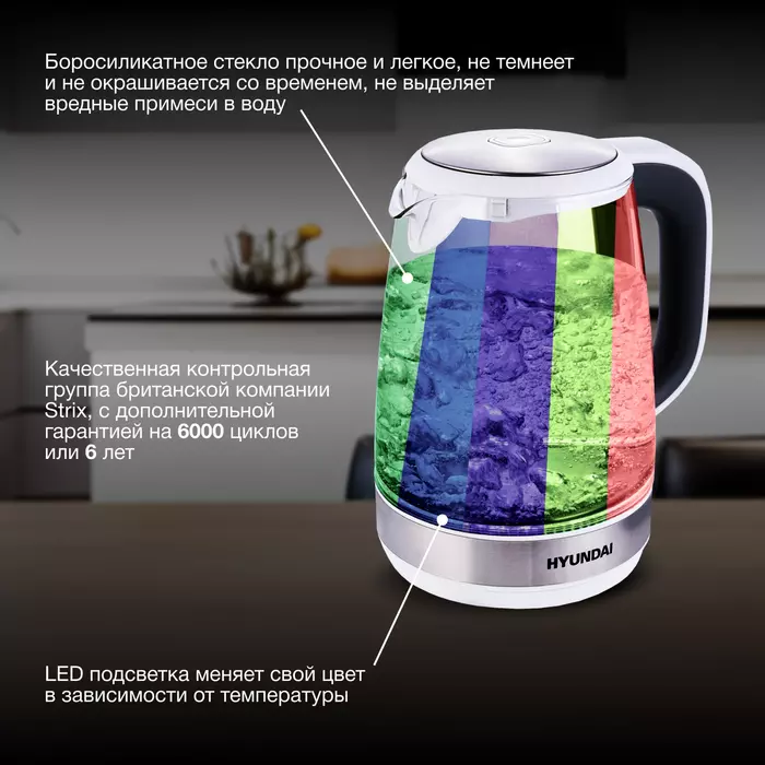 | Конструктивные особенности | кнопка открытия крышки, подсветка воды, подставка 360, фильтр от накипи |