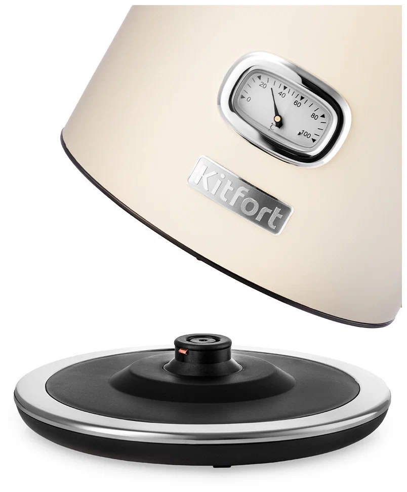Электрический чайник Kitfort КТ-6150 предназначен для кипячения воды дома, в офисе, на даче. Корпус чайника металлический. Крышка выполнена из металла с пластиковой вставкой, а подставка из пластика. Мерная шкала находится под ручкой. Ручка чайника пластиковая, не нагревается и удобно лежит в руке.