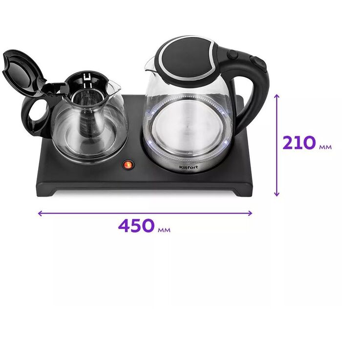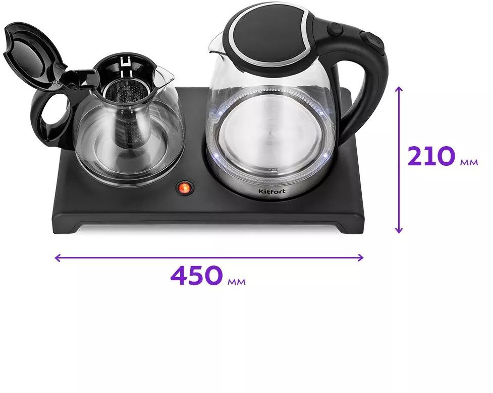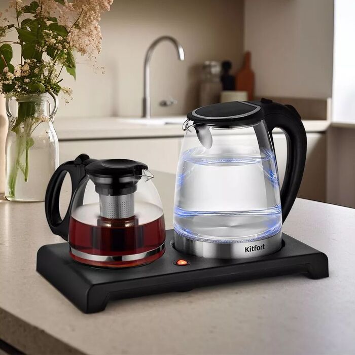 Стильный и функциональный чайный набор Kitfort КТ-6180 состоит из чайника ёмкостью 2 л, кувшина с фильтром для заварки ёмкостью 1,2 л и базы. Набор поможет вам не только вскипятить воду, но и заварить чай или кофе.