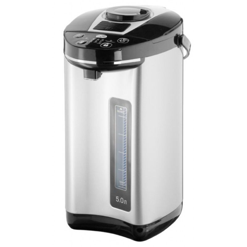 - Мощности 750 Вт достаточно, чтобы вода в колбе из нержавеющей стали закипала в считанные минуты, несмотря на внушительный объем 5 литров.