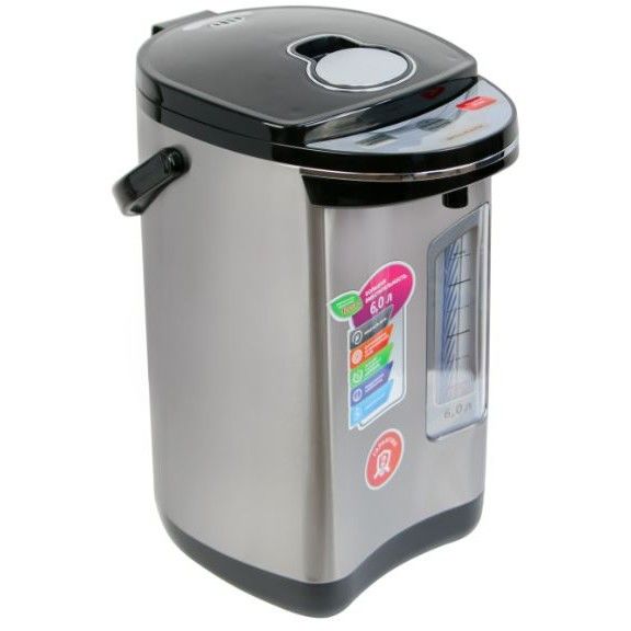 - Чайник-термос бытовой электрический прибор, сочетающий в себе функции электрочайника и термоса. На данной модели установлен нижний нагревательный элемент мощностью 900 Ватт, который несомненно увеличит срок службы поттера. Температура кипячения 100 градусов Цельсия, поддержание температуры 85 градусов Цельсия. Внешний корпус с оригинальным стильным рисунком выполнен из чёрного пластика и нержавеющей стали