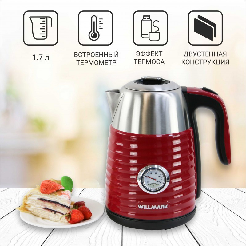 - Чайник электрический имеет двухстенную конструкцию, в которая наружняя часть выполнена из экологически безопасного пищевого пластика, внутренняя - из нержавеющей стали
