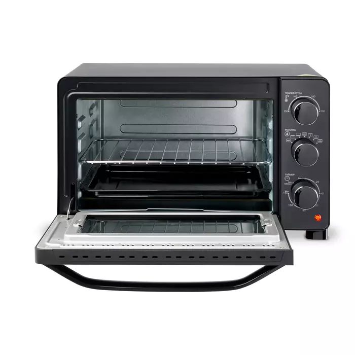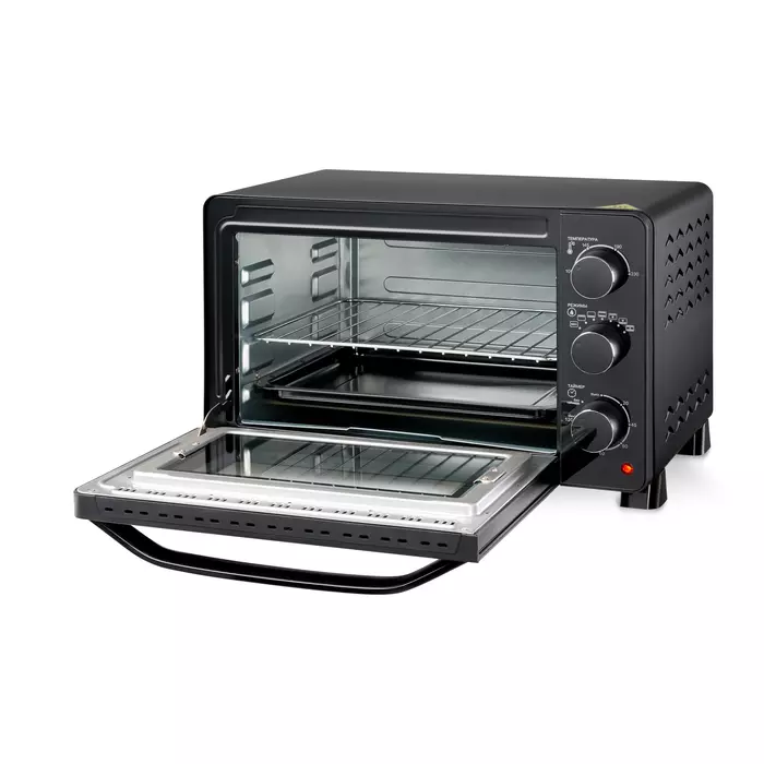 | Особенности | двойное стекло, современный дизайн, ручка из аллюминия черного цвета, корпус не нагревается так, как у обычных моделей. размеры противня 336.2x260x20.5 |