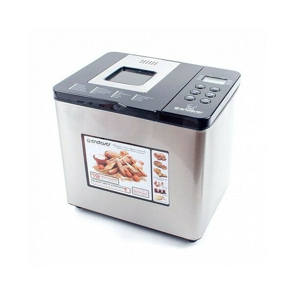 Хлебопечь Endever Skyline MB-54 вес выпечки до 750 г, регулировка веса выпечки, мощность 750 Вт, программ выпечки: 19, цвет черный/стальной