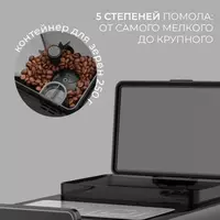 Характеристики Регулировка крепости напитка, объема напитка, степени помола, температуры напитка Съемные элементы дренажный отсек для капель,...